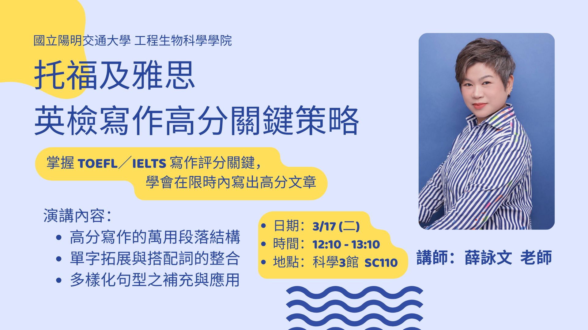 | NYCU-UCSD雙邊研討會(下午第一場演講) | 賢齊舘1F 國際會議廳 | 13:20開放10分鐘於1F研討會報到桌簽到課後正常交作業 |